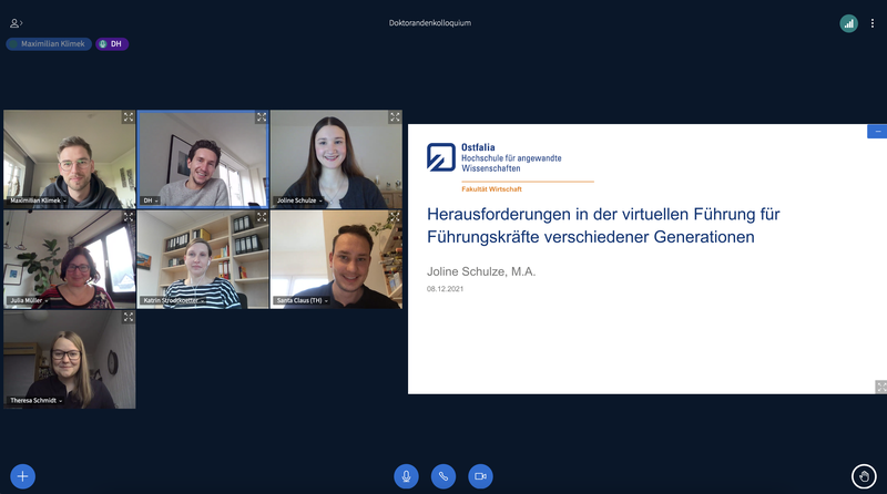 Unsere externe Doktorandin Joline Schulze präsentierte den aktuellen Ergebnisstand in ihrem Forschungsprojekt "Herausforderungen in der virtuellen Führung für Führungskräfte verschiedener Generationen".