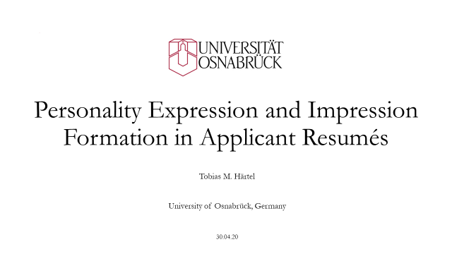 Tobias Härtel präsentiert sein Forschungsprojekt "Personality Expression and Impression Formation in Applicant Resumés".